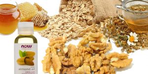 زيت اللوز الحلو : هو من المواد المرطبة حيث أن الاكزيما هي عبارة عن جفاف بالأصل لأنه يخفف من الاكزيما بعد الدهن 12 ساعة