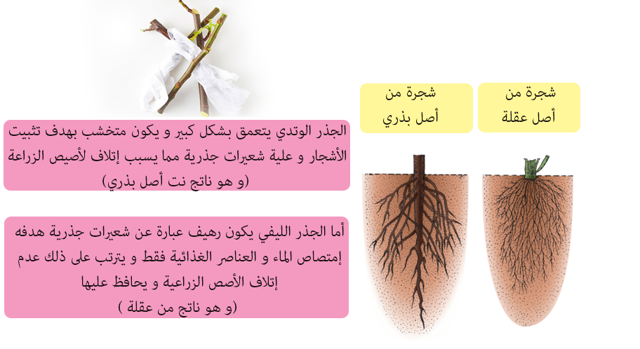 كما يجب عليك أختيار أشجار من أصل أكثار خضري لتحصل على شجرة ذات جذور ليفية لا تتعمق كثيراً و لا تتخشب مما تساعد على عدم الإضرار بالاصيص , فإذا زرعت شجرة ذات أصل جذري وتدي ستعاني من خراب الاصيص بعد تقدم الشجرة بالعمر .