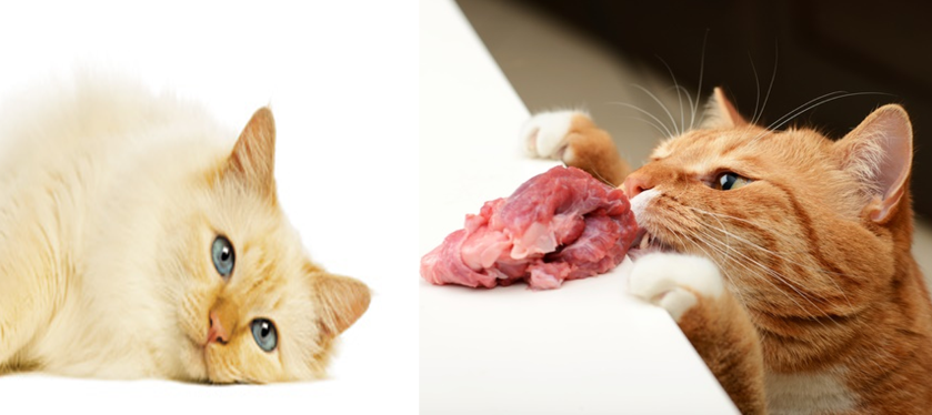 يمكن للقط أكل الأحشاء الداخلية للحيوانات و لكن يجب الحذر حيث أن الكبد غني بالفيتامينات و البروتينات و قد يعطي تأثير ملين للقطط و أن 80 جرام من الكبد تعطي 195 من السعرات الحرارية , و الرئتان و هي ما يطلق عليها الفشة فهي قليلة السعرات الحرارية و هي تعطى للقط للتخفيف من وزنة , كما يمكن اطعام القطط الامعاء بعد تقطيعها لقطع صغيرة و تقدم بشكل اسبوعي للتنوع في الطعام .